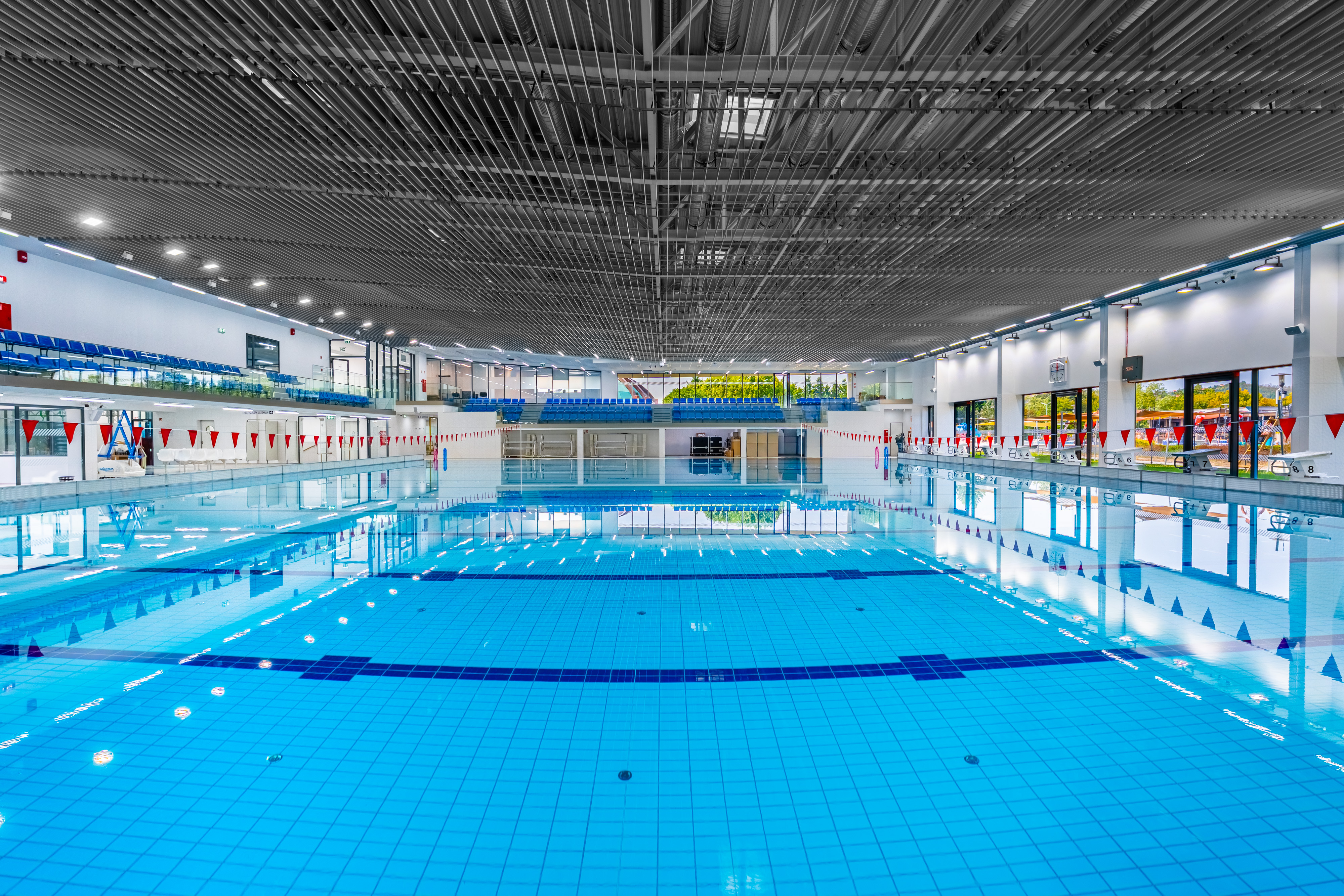 Az épület elsődleges rendeltetése az úszás és a vízilabda edzésének és oktatásának biztosítása. A háromszintes létesítmény összesen 3 791 négyzetméter alapterületű. Az épületben egy nagymedence és egy tanmedence kapott helyet, amelyekhez 133, illetve 121 fő befogadására alkalmas lelátók kapcsolódnak.